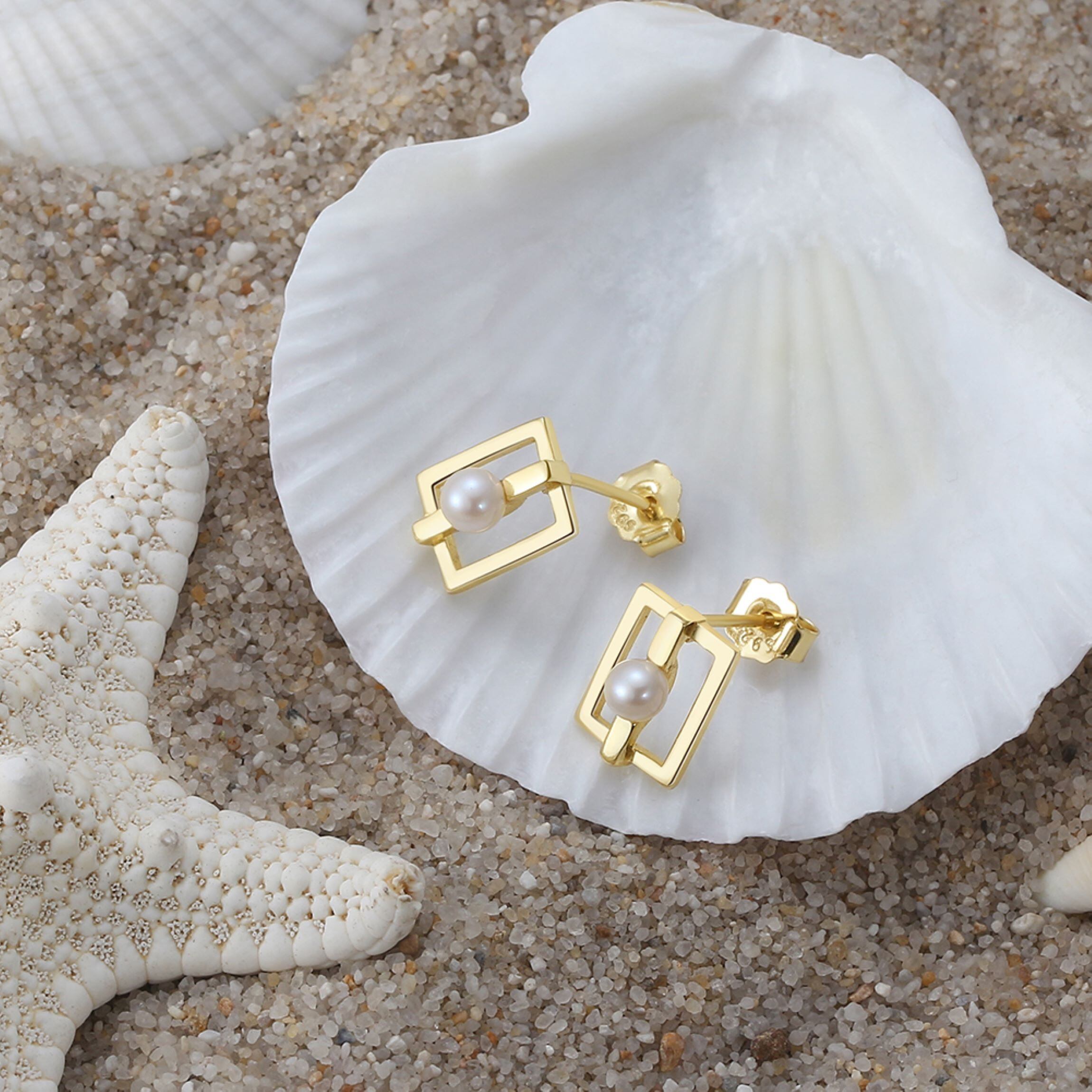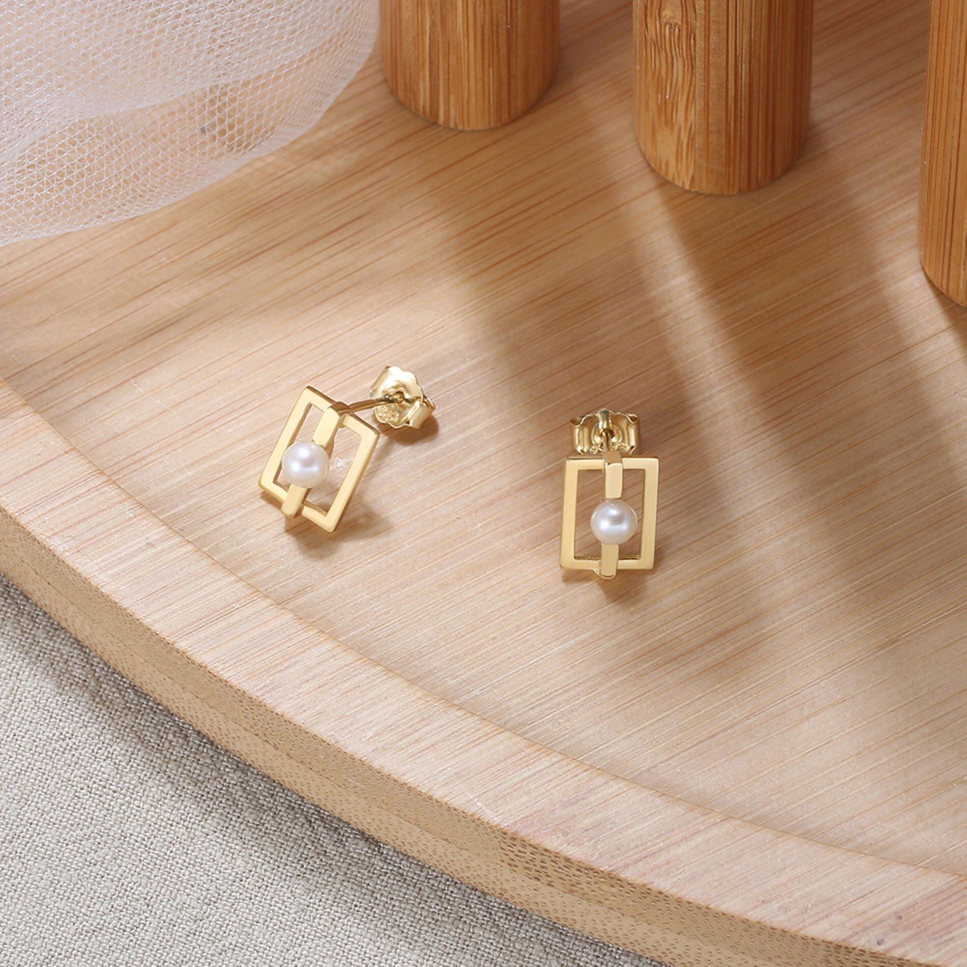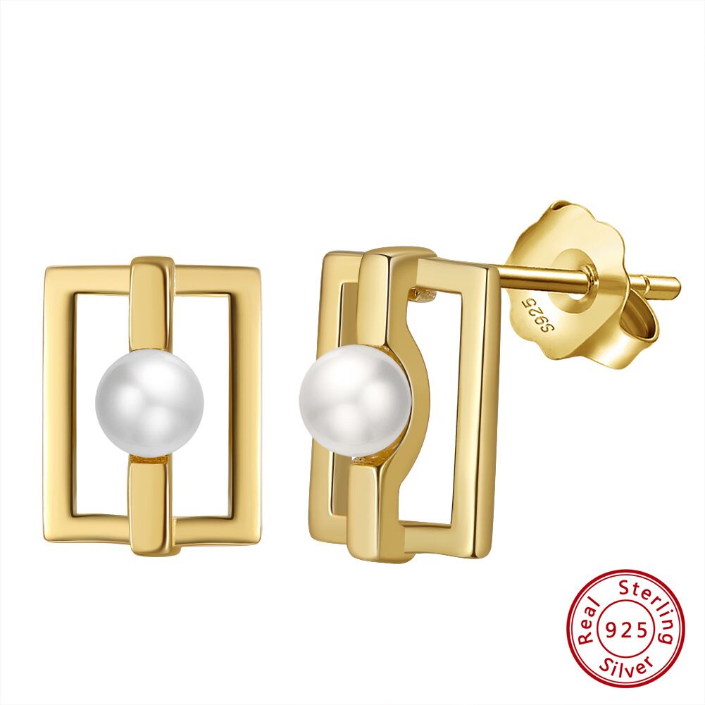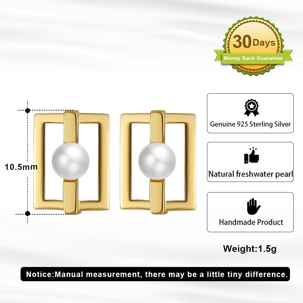 100%S925シルバーピアス 14K金メッキバロック真珠付き スタッドスクエアピアス  silver925