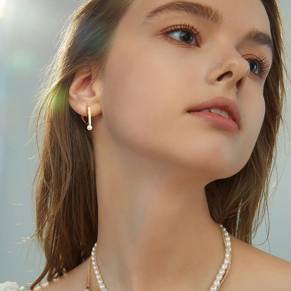 100%S925シルバーピアス 14K金メッキ 大人シック淡水パールピアス D文字 silver925