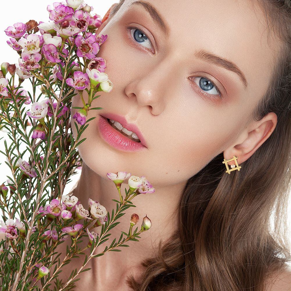 100%S925シルバーピアス 14K金電気メッキ 淡水パールピアス パズル形 silver925