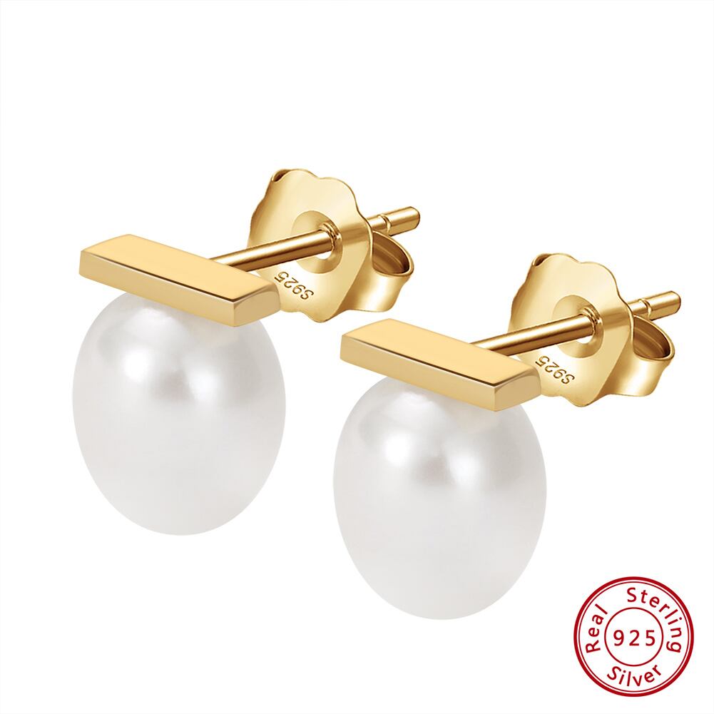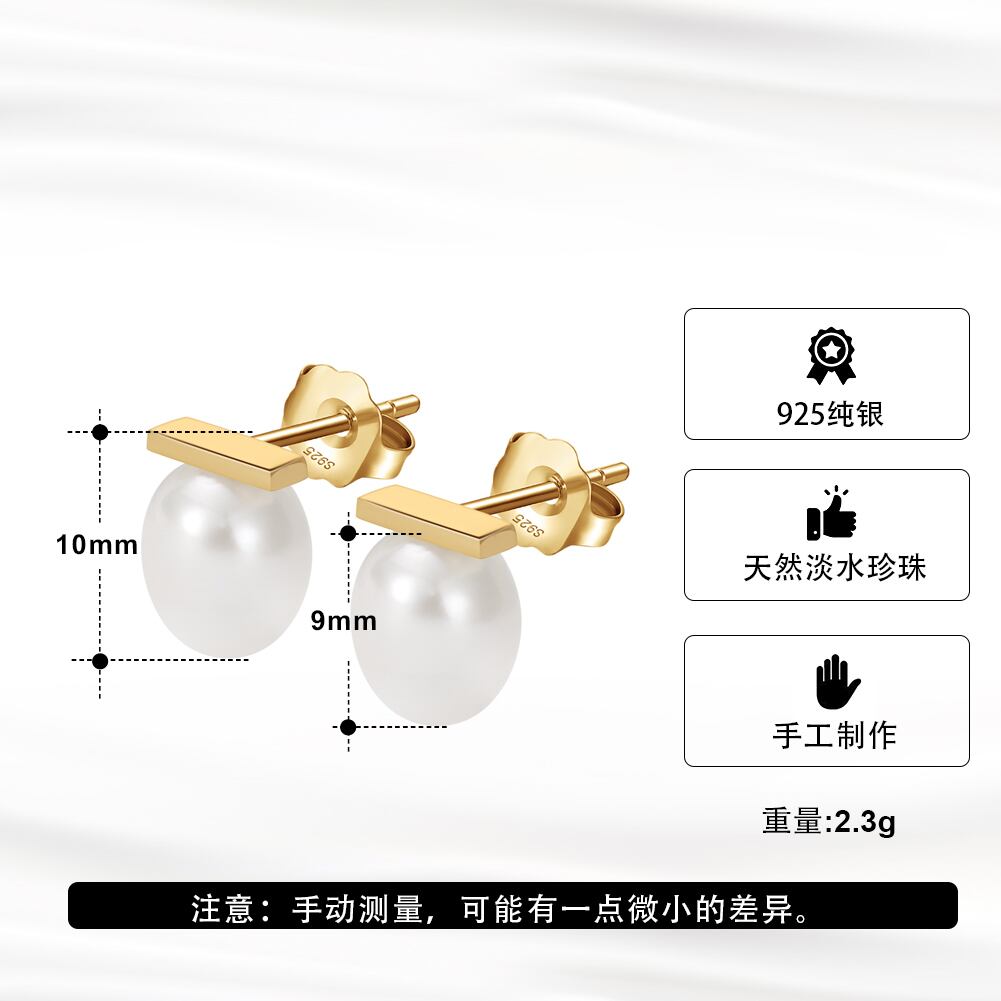 100%S925シルバー 14K金電気メッキ 淡水パールスタッドピアス  silver925