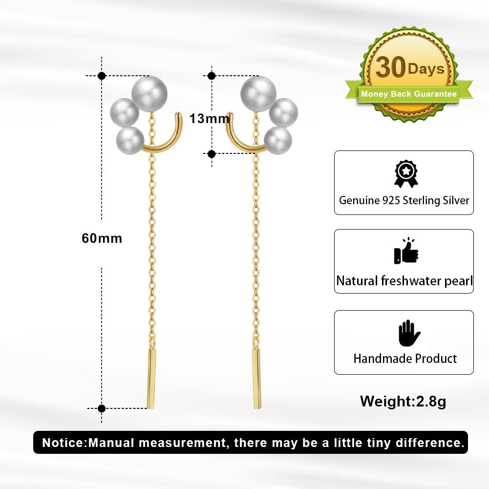 100%S925シルバー 14K金電気メッキ 淡水パールチェーンピアス  silver925