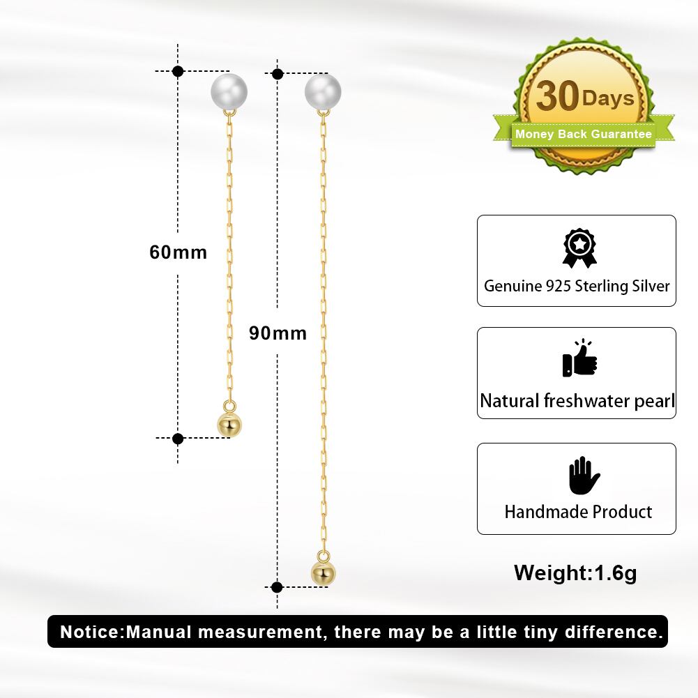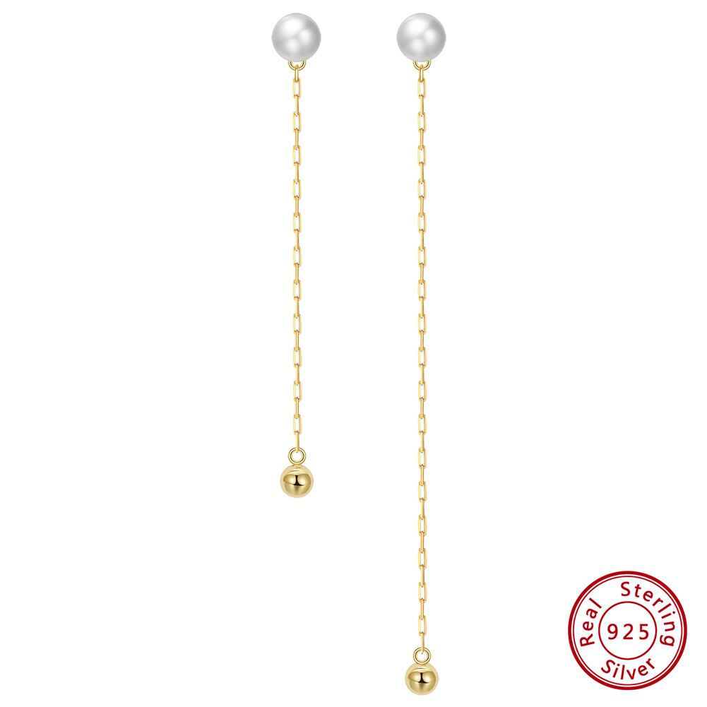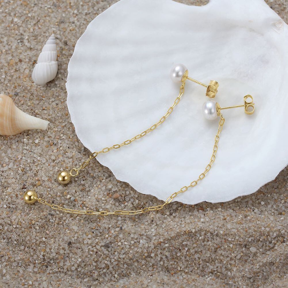 100%S925シルバー 14K金電気メッキ 淡水パールチェーンピアス  silver925 長短タイプ