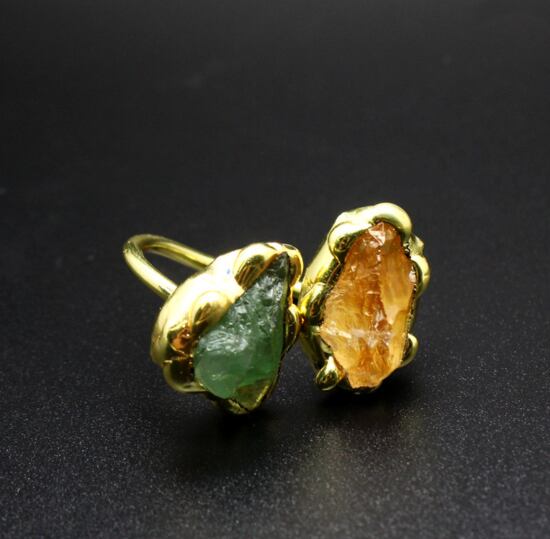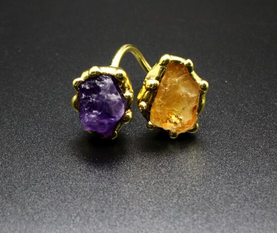 天然石 手作り水晶原石リング (アメジスト グリーンフローライト、シトリン)