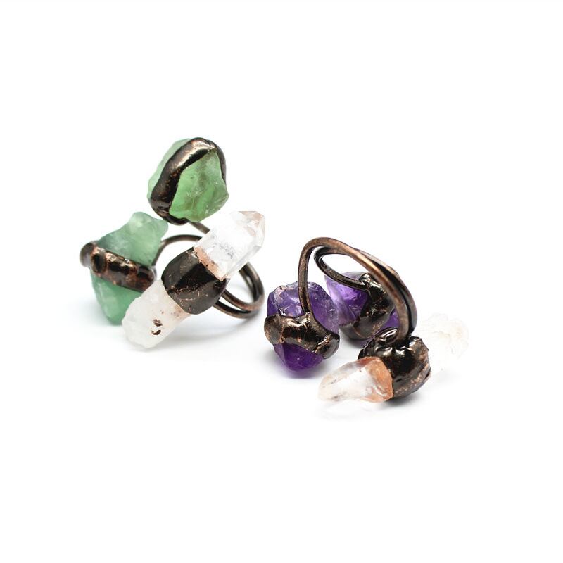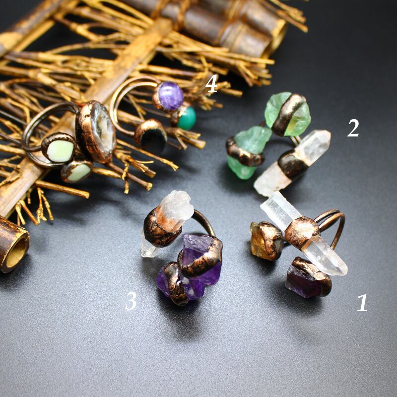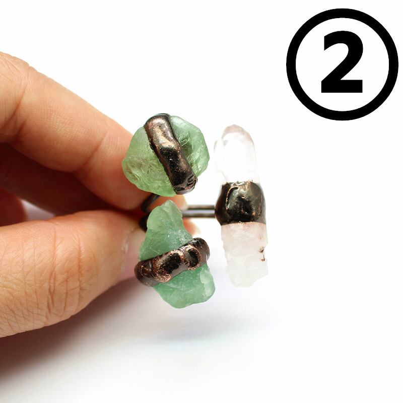天然石 手作り水晶原石リング (グリーンフローライト クオーツ)