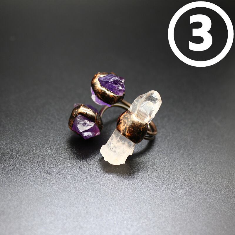 天然石 手作り水晶原石リング (アメジスト、 クオーツ)