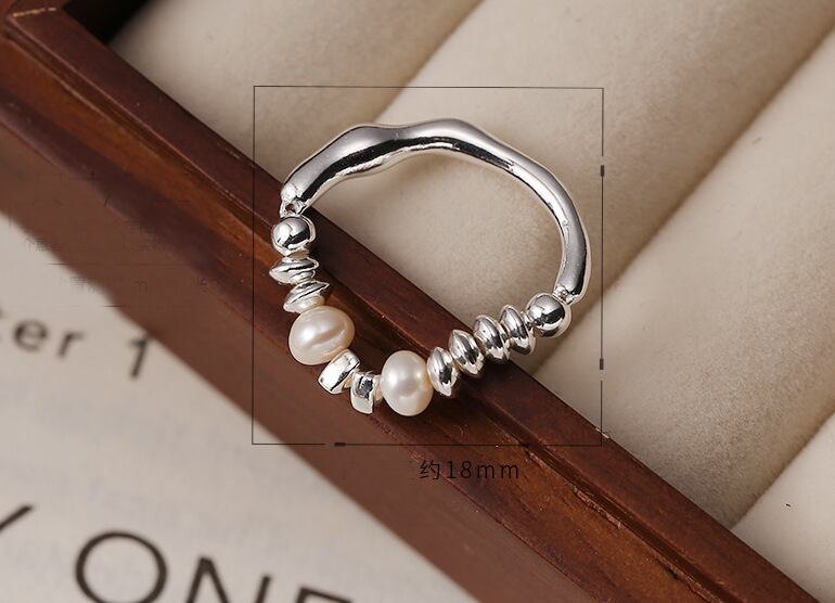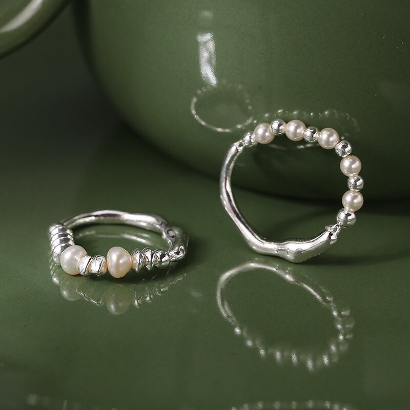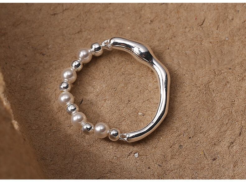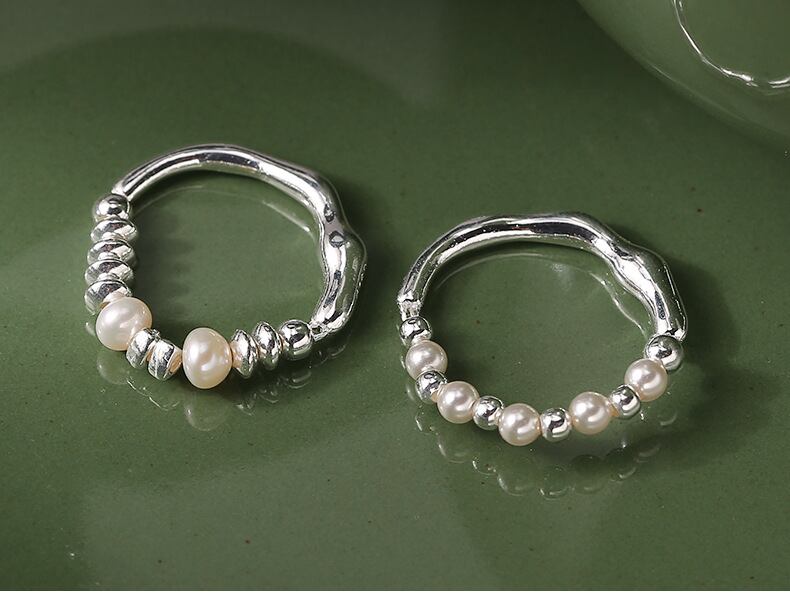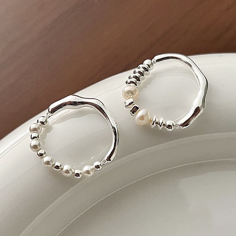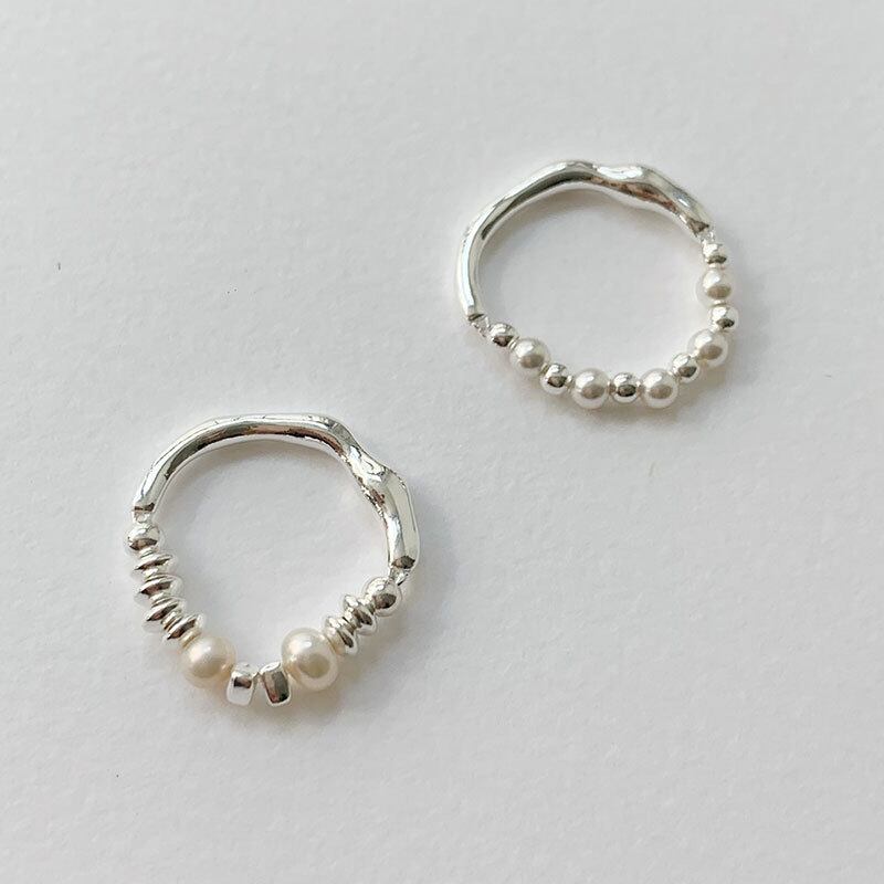 100% S925シルバー 純銀 パール付きリング 丸いシルバービーズ/ソロバンシルバービーズ 2種類