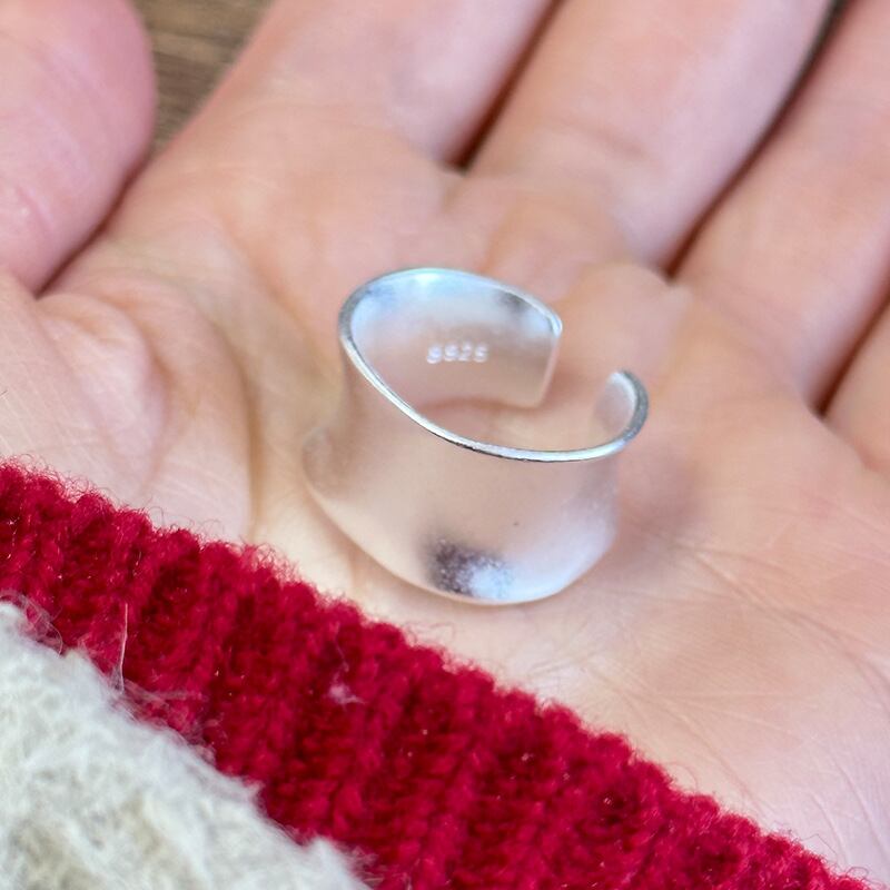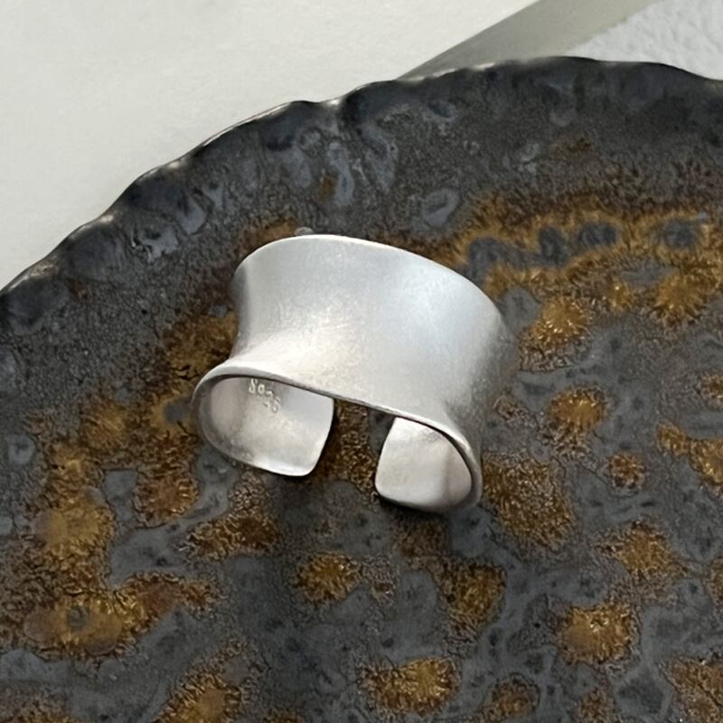 100% S925シルバー マット仕上げシックデザインリング フリーサイズ