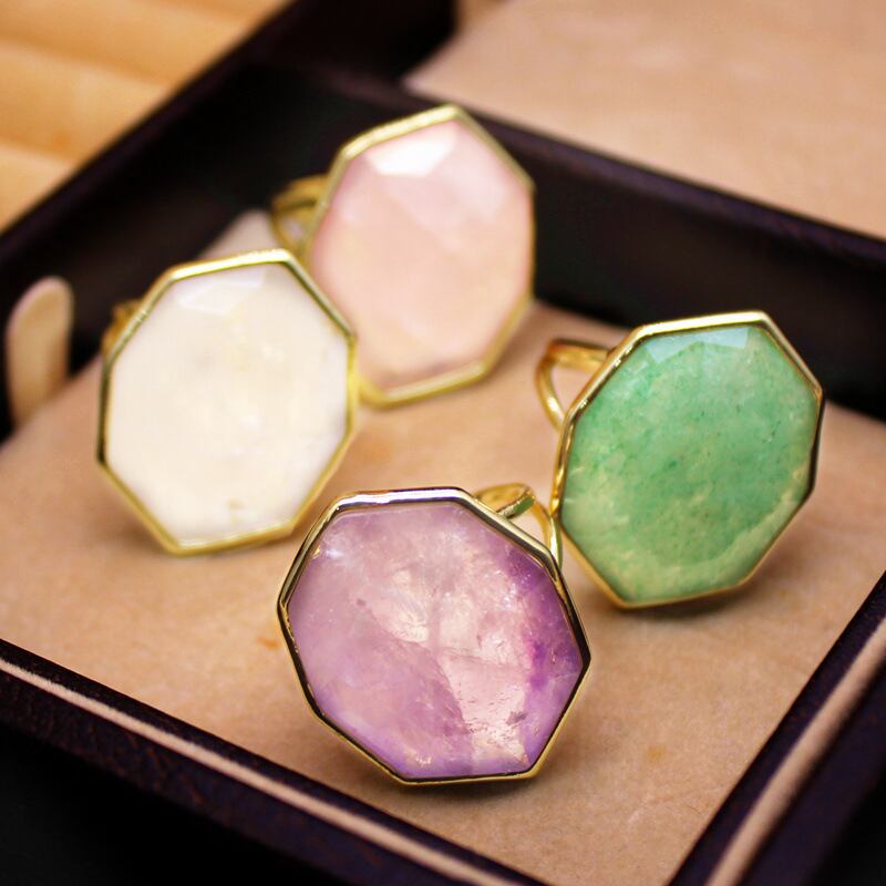 天然石 手作り天然水晶原石リング 4種類