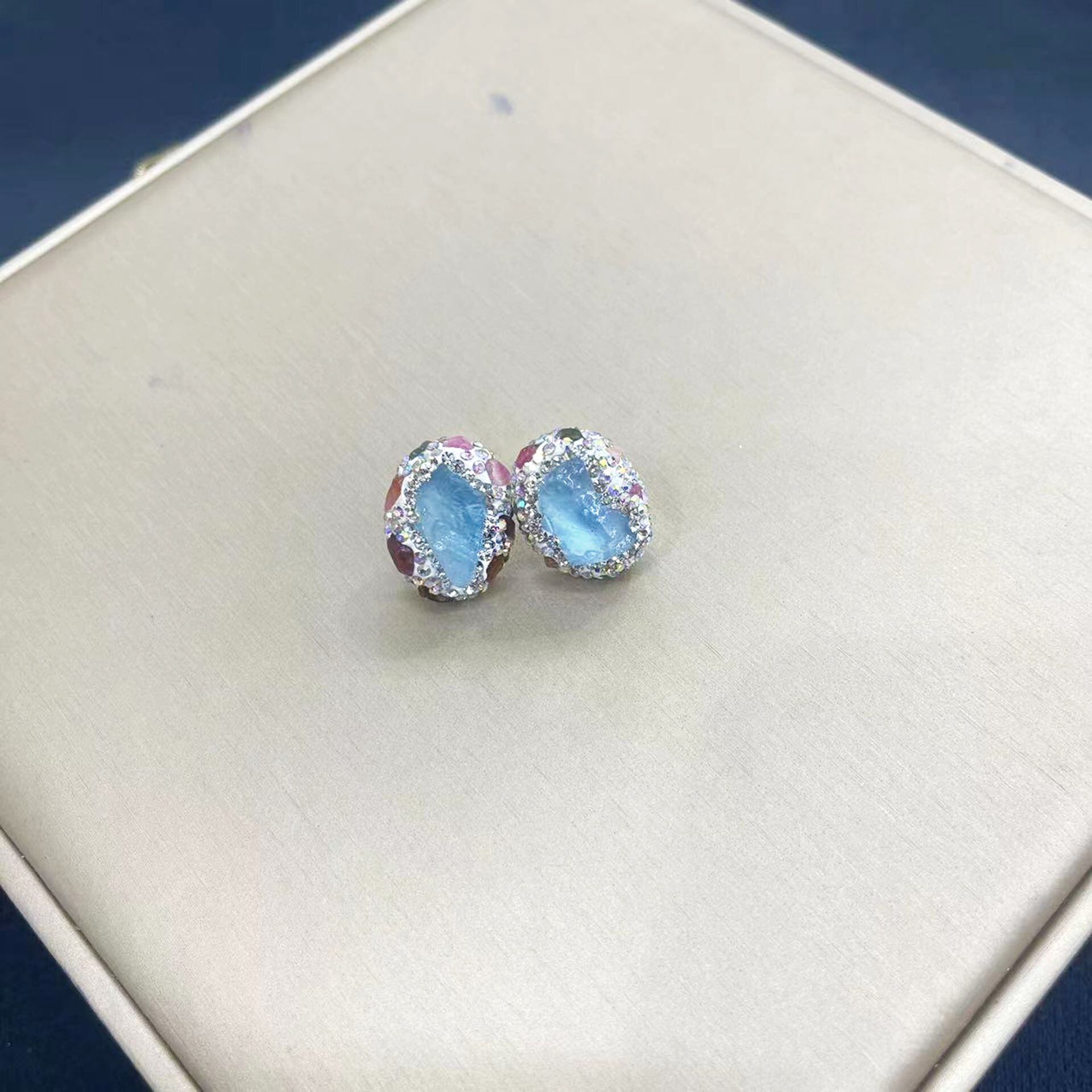 天然石 天然水晶 アクアマリン原石+トルマリン 3点セット(ネックレス、リング、ピアス)