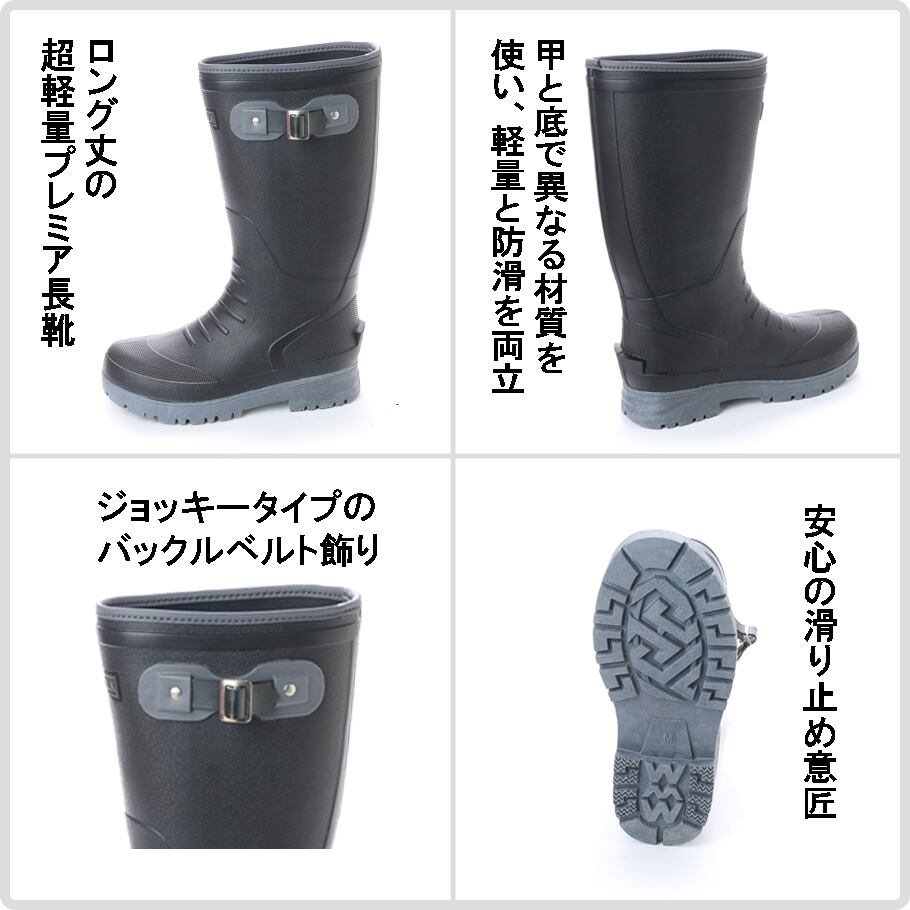 メンズ ロング レインブーツ 軽量 防滑 長靴 スーパーライト aw_17081