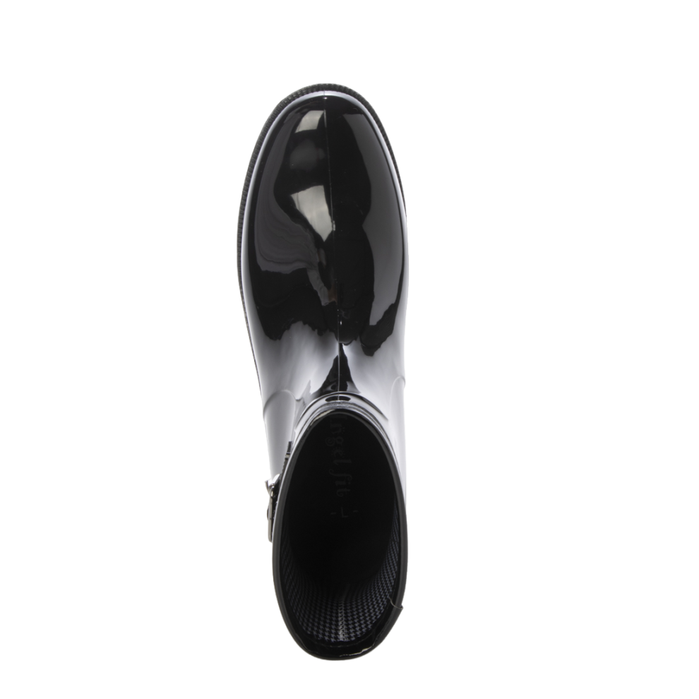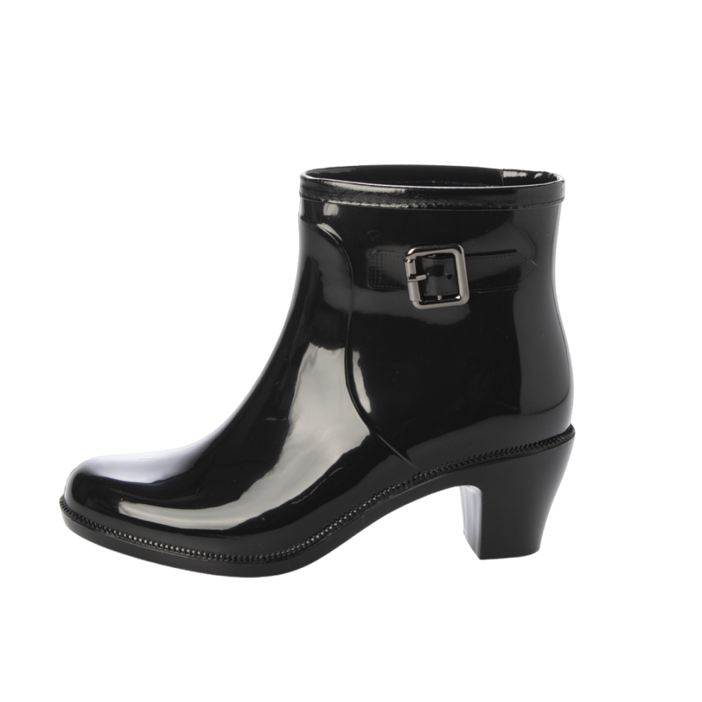 レディース ショート レインブーツ レインシューズ バックル ベルト チャンキーヒール エナメル調 af_24066