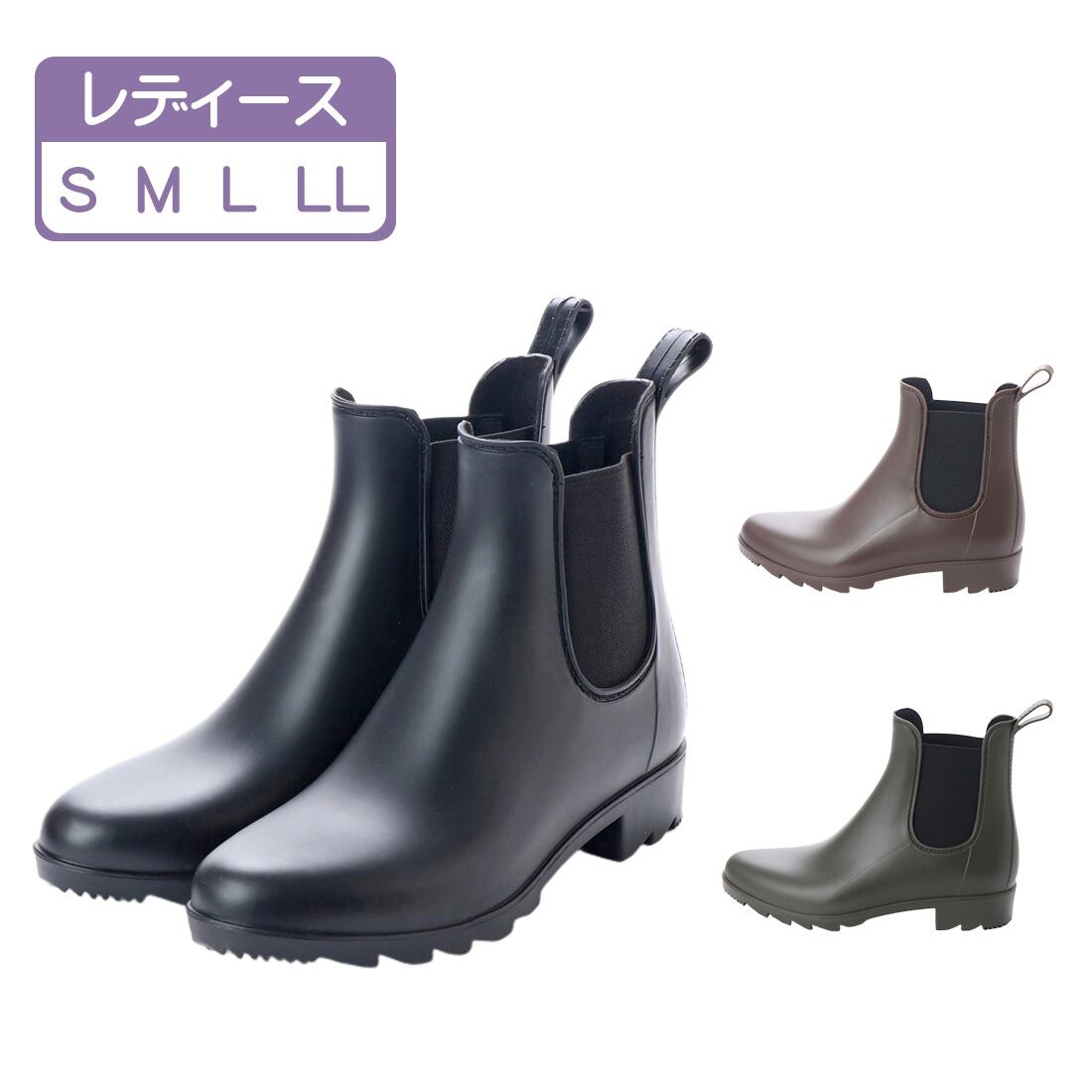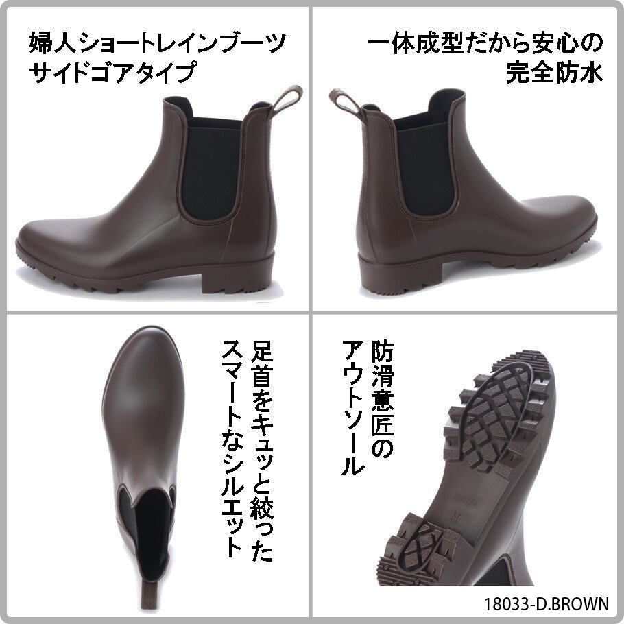 レディース サイドゴア ショート レインブーツ マット調 晴雨兼用 一体成型 af_18033
