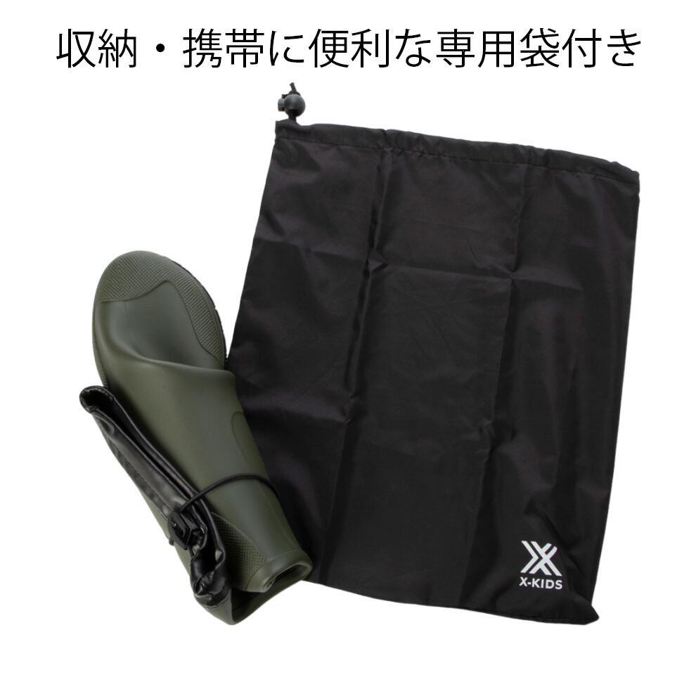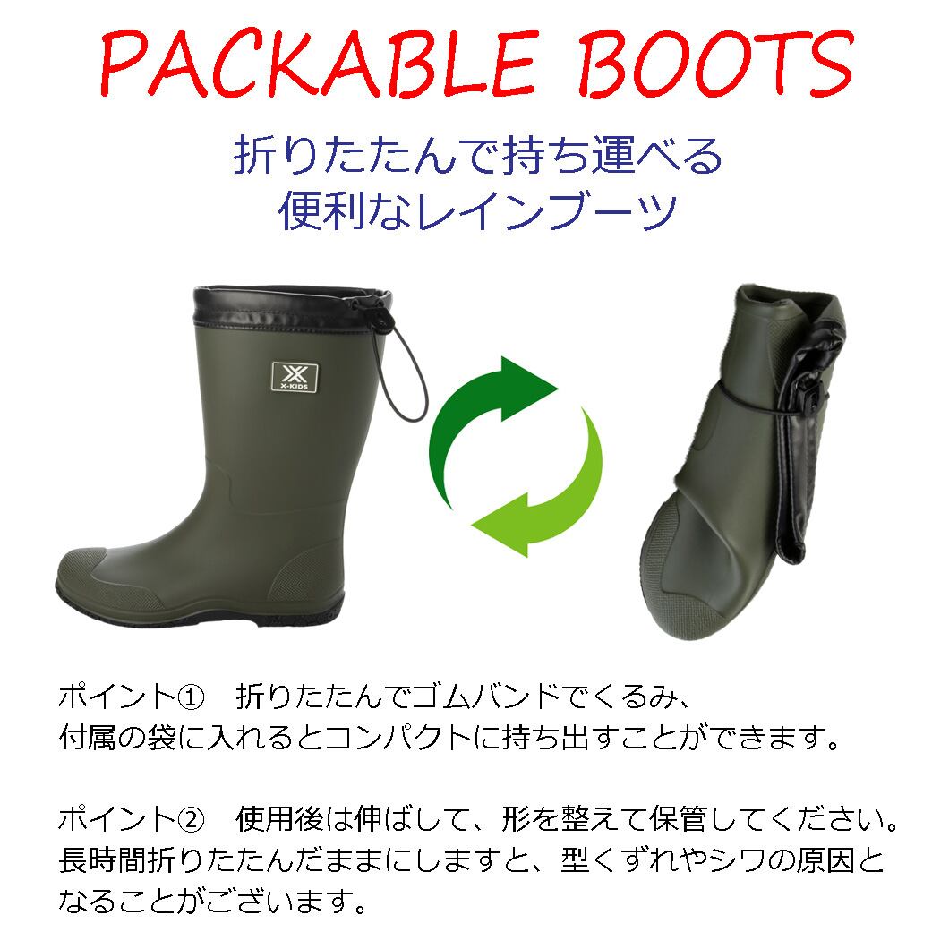 キッズ パッカブル レインブーツ 長靴 雨靴 折り畳み 折りたたみ 幅広 防滑底 収納袋付き xk_24065