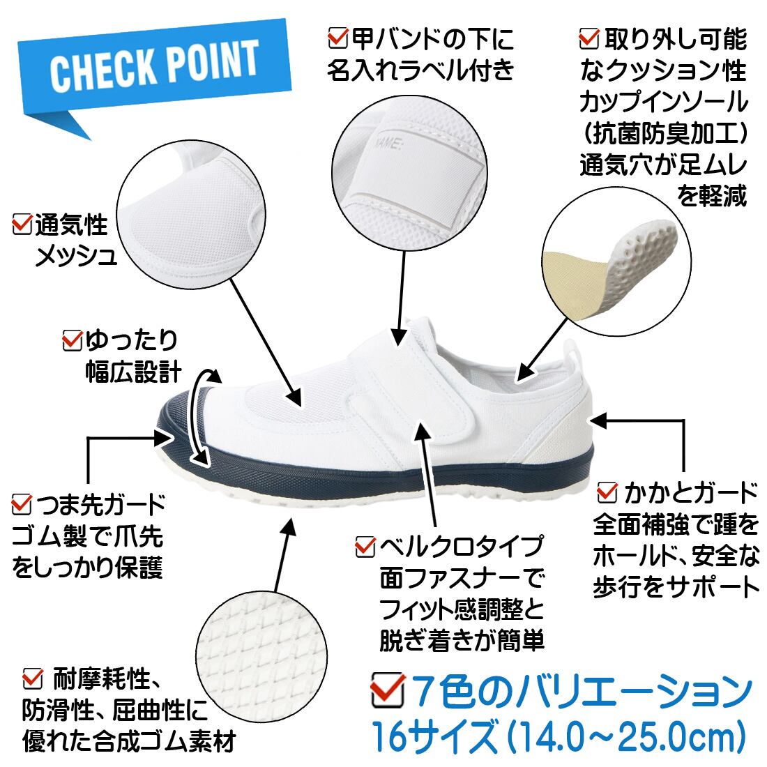 上履き 上靴 スクール 体育館シューズ メッシュ 抗菌 防臭 中敷 バッグ付き kp_23999 -ネイビー-