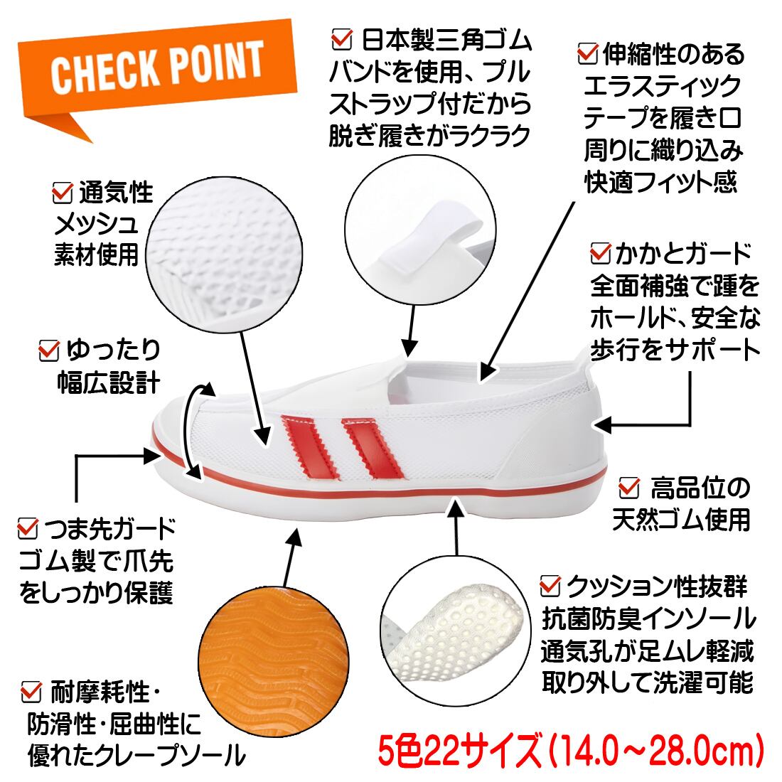 上履き 上靴 スクールシューズ 体育館シューズ カラーバレー 三角ゴム 日本製甲ゴム kp_24999 -レッド-