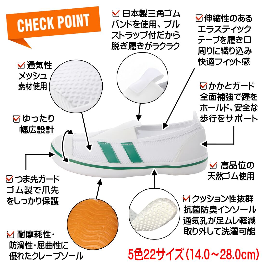 上履き 上靴 スクールシューズ 体育館シューズ カラーバレー 三角ゴム 日本製甲ゴム kp_24999 -グリーン-
