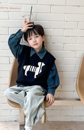 2024新品 男女兼用 子供服 キッズ トップス ベスト ニットベスト 90-160CM