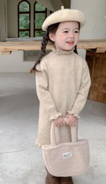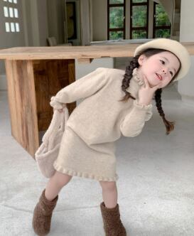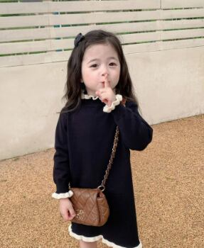 2024新品  韓国風 子供服 キッズ 可愛い ニット ワンピース 2色 80-150CM