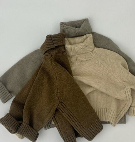 2024秋新作★子供服 キッズ トップス ニット セーター ハイネック 80-130CM 3色