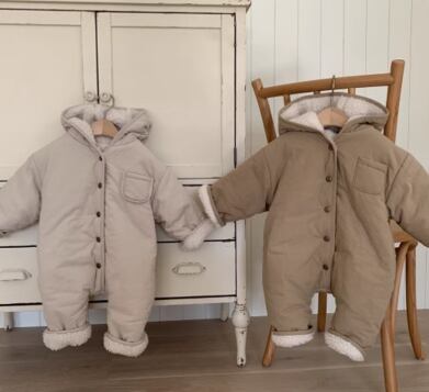 新作 韓国風子供服 ベビー服 ロンパース 無地裏起毛ボタン付き連体服 厚手アウター 66cm~100cm 2色