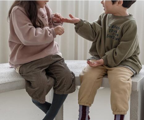 新作 韓国風子供服 キッズ服 英字柄長袖トレーナー 80cm~130cm 2色