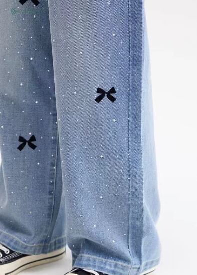 新品 ボトムス ホットドリル リボン ジーンズ デニムズボン ズボン パンツ 100-150cm