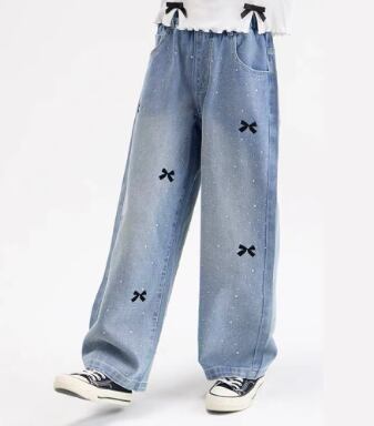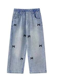 新品 ボトムス ホットドリル  リボン  ジーンズ デニムズボン ズボン パンツ 100-150cm