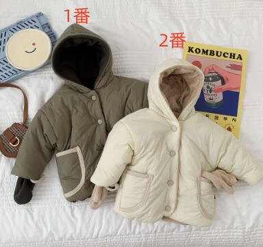 2024新品  子供服 キッズ 男女兼用 裏起毛ショートコート アウター コート  手袋付★73-100CM   2色