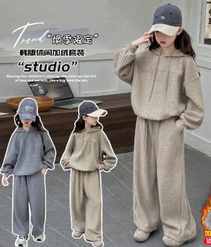 2025春入荷新品  子供服 キッズ 裏起毛 パーカー+ズボン セットアップ ★120cm~170cm 2色