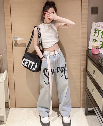 新品 ボトムス ジーンズ ベルト付き カジュアル ハイウエスト デニムズボン パンツ 110-170cm