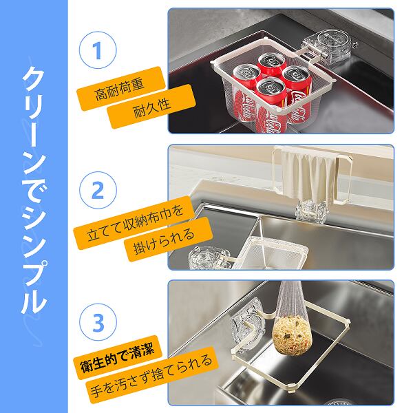 三角コーナー 強力吸盤 水切りネットホルダ 生ゴミ処理 水切りネット50枚付き アイボリー