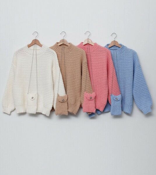 波柄ニット&ミニバッグセット
