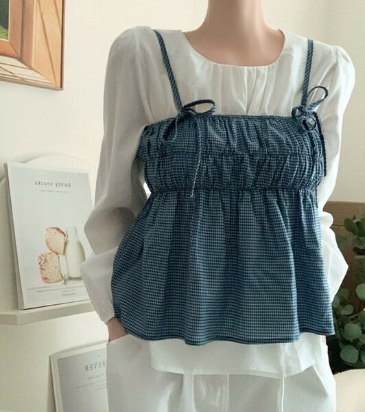 タックブラウス&リボンビスチェセット