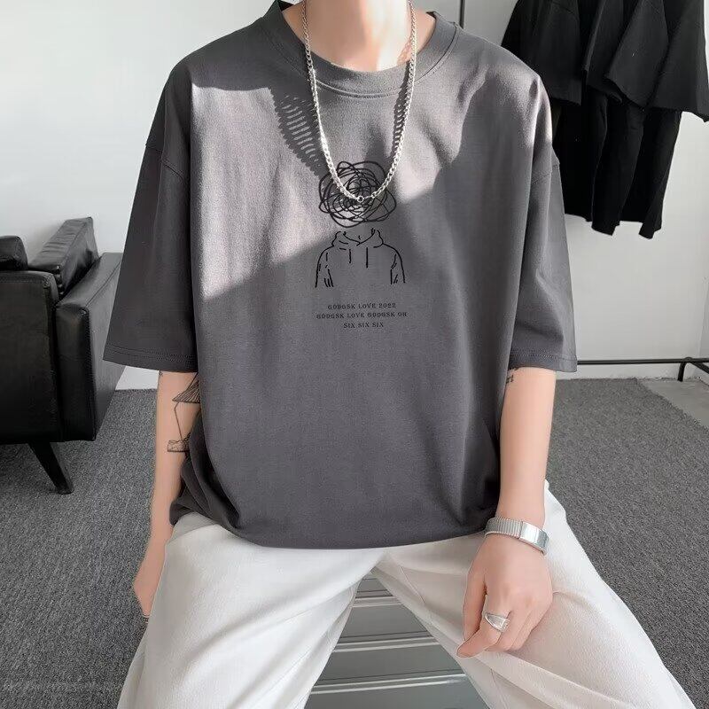メンズ・Tシャツ・ブラウス・新作 ・ゆとり・気質・半袖Tシャツ・トップス・M~5XL 3色