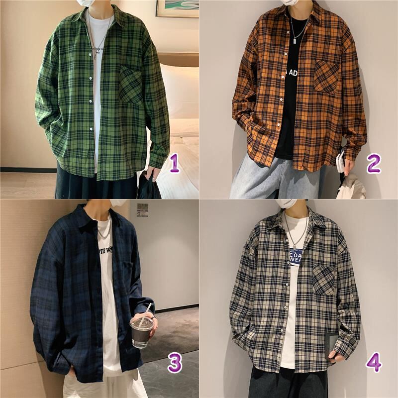 メンズ用トップス・格子柄・秋新作・アウター・気質・シャツ長袖・M~2XL 4色