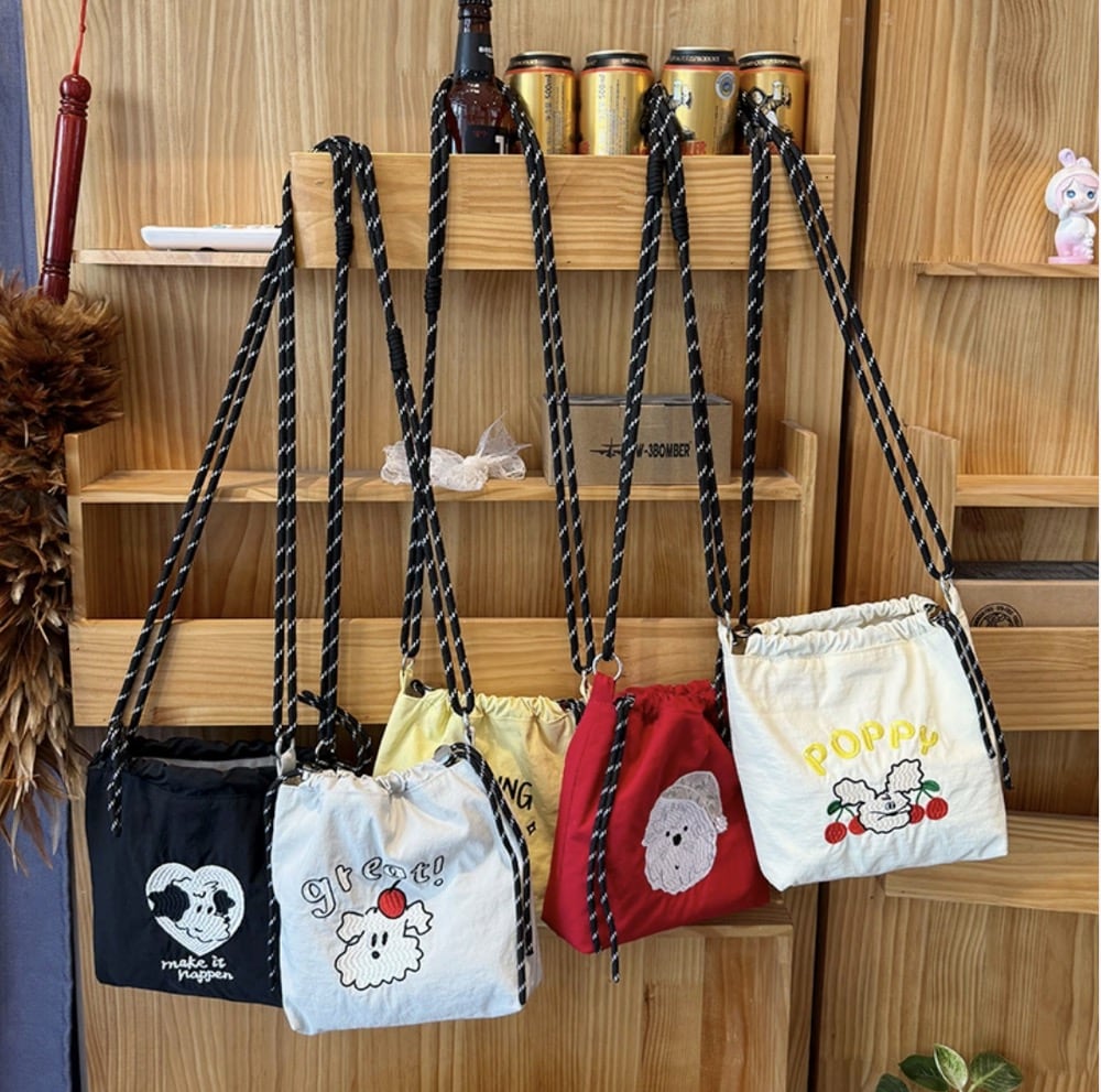 刺繍ショルダーバッグ キャラクター 大容量 斜め掛け肩掛け ドロールバッグ 韓国ファッション カジュアル