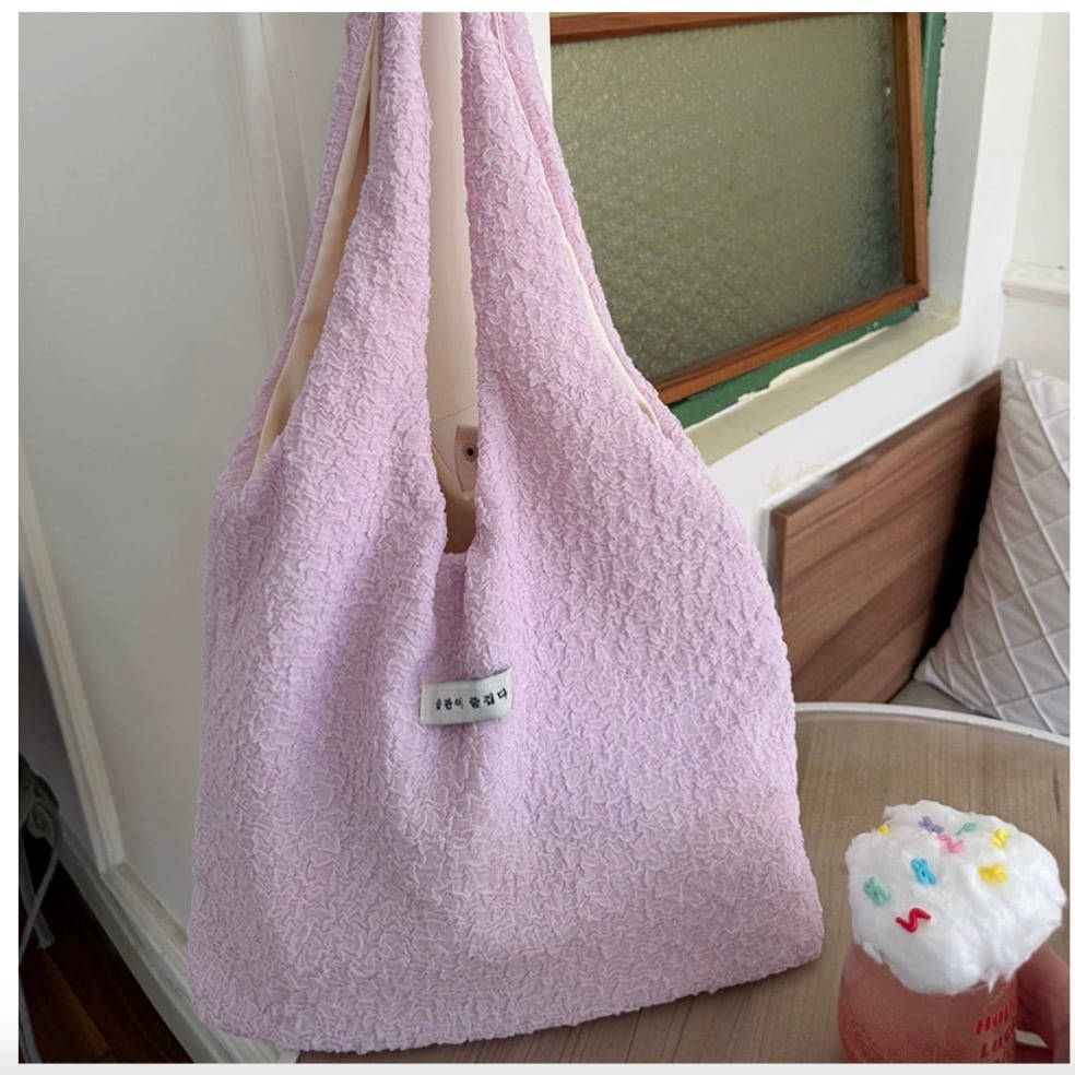 【大容量】シンプルのデザインでしたが、素材のお陰で軽くていっぱいに収納できられます。見た目がキュートだけど、容積が大きい、Ipad/本/長財布/折り畳み傘/弁当等も収納できられます。