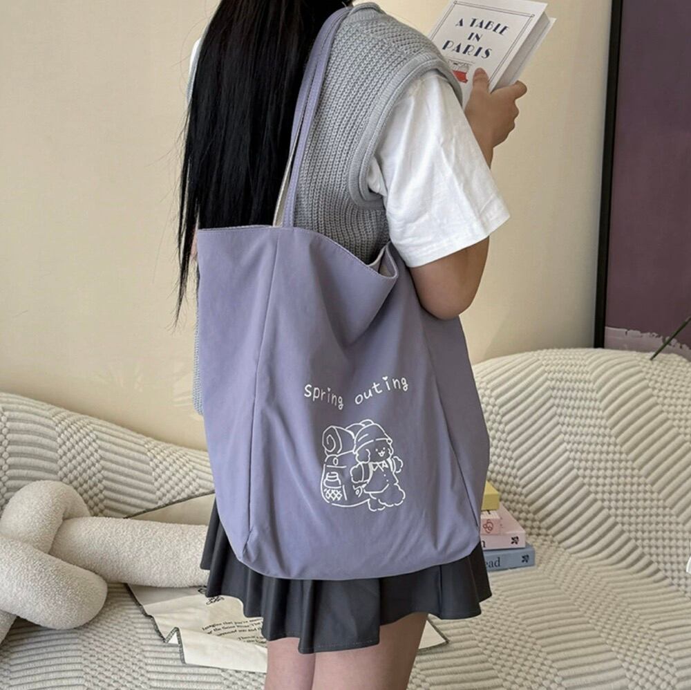 【大容量】シンプルのデザインでしたが、素材のお陰で軽くていっぱいに収納できられます。見た目がキュートだけど、容積が大きい、Ipad/本/長財布/折り畳み傘/弁当等も収納できられます。