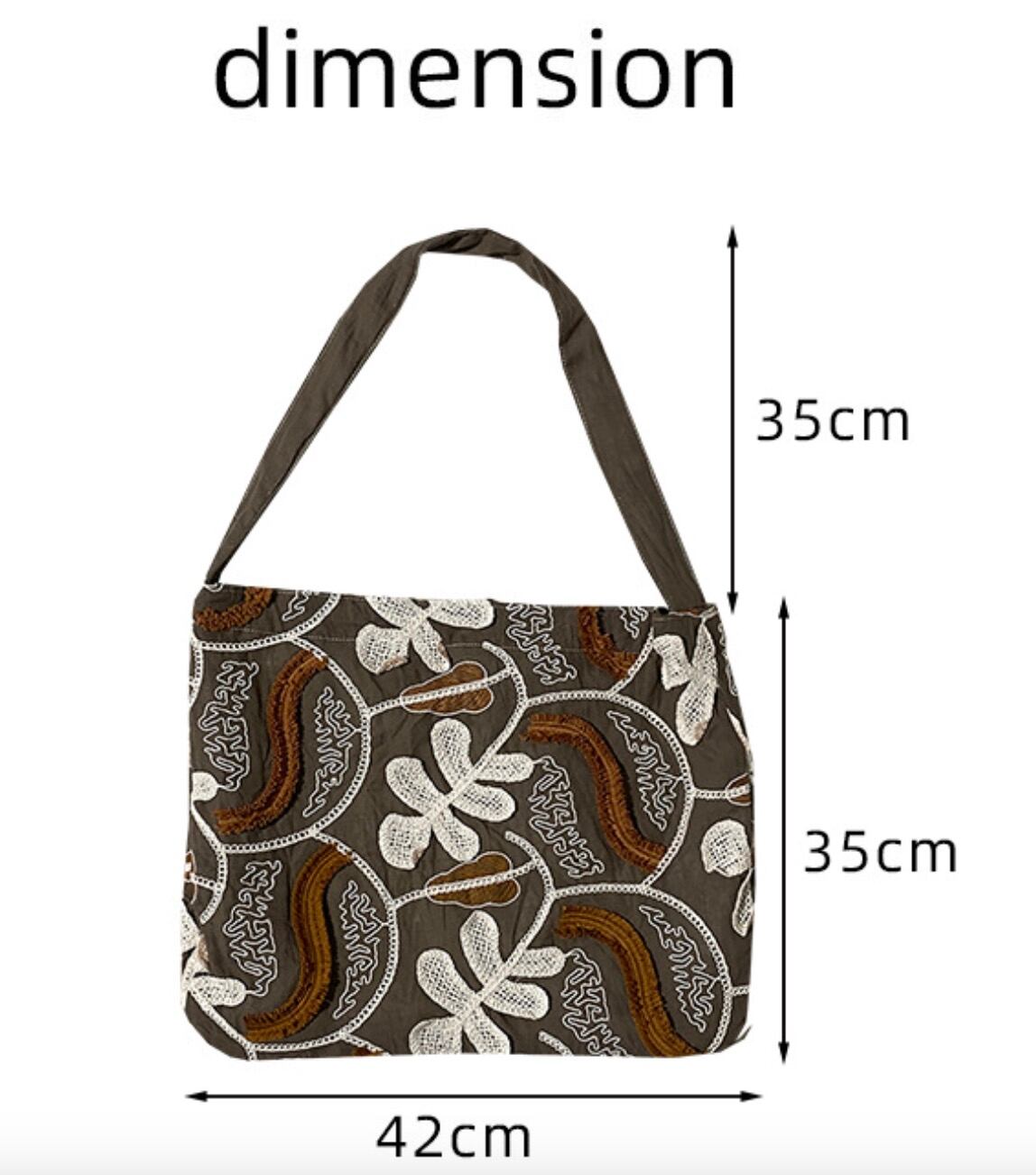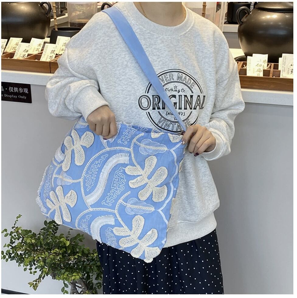 ショルダーバッグ 刺繍 トートバッグ 大容量斜め掛け肩掛け ドロールバッグ ファッション カジュアル