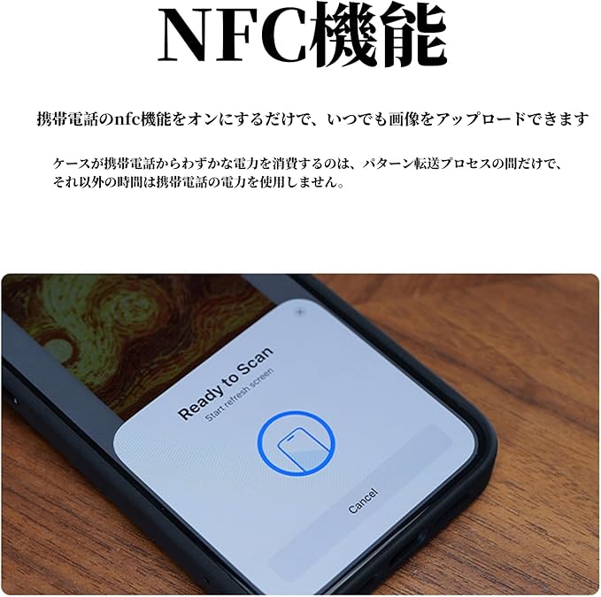 【インクスクリーンで自分だけのデザイン】ご自身の好みに合わせてデザインを自由に変更できるインクスクリーンを採用しています。また、チャージが不要で消費電力も少なく、環境に優しいエコフレンドリーなアイテムです。ケースが携帯電話からわずかな電力を消費するのは、パターン転送プロセスの間だけで、それ以外の時間は携帯電話の電力を使用しません。インク・スクリーンは電力なしで表示を維持します。