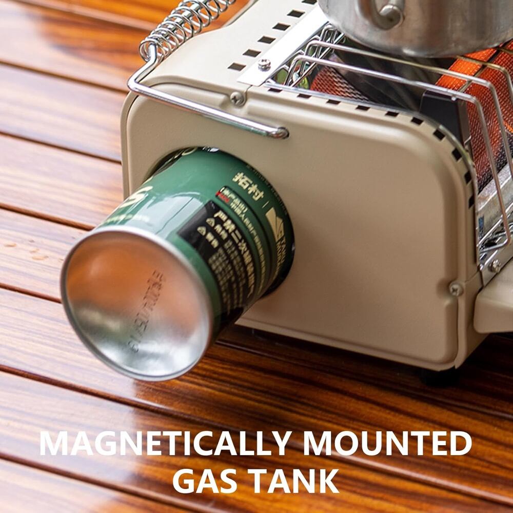 ステンレス鋼で作られたこのキャンプ用暖炉は点火システムとサポートカセットキャニスターを備えており、どんな環境でも優れたパフォーマンスを保証します。