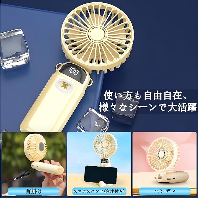 楽に冷却: 丸みを帯びたボディデザインを特徴とするこの小型ファンは、首掛け、手持ち、またはデスクトップでの使用に対応します。軽量でポータブルで、マルチアングルブロー機能によりシームレスな操作が可能です。