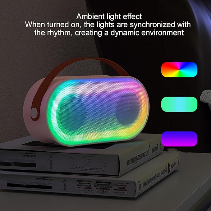 アンビエントライト効果:スピーカーにはワンタッチボタンがあり、音楽のリズムに合わせて踊って同期するカラフルな光効果をアクティブにし、ダイナミックで活気のあるコンサートのような環境を瞬時に作り出します。モダンなデザイン:ワンタッチでスピーカーに接続してマイクを起動し、歌うことができます。スピーカーはマイクなしでスタンドアロンの音楽再生にも使用できます。簡単な接続性:スピーカーは、10メートルの範囲内で安定した接続を保証するテクノロジーを利用しており、スマートフォン、タブレット、コンピュータ、その他のデバイスとのシームレスなペアリングが可能です。ハイパワー:小型ながら3000mAhの大容量低消費電力バッテリーを搭載し、電池寿命が長く、歌やパーティーを思う存分楽しめます。複数の再生モード:接続に加えて、スピーカーは AUX モードとメモリ カードの再生もサポートしており、さまざまなソースから音楽を再生するための多彩なオプションを提供します。