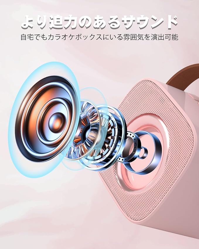 【おうちでも歌おう!】カラオケボックスに負けない雰囲気が出せるカラオケセットは、独自のオーディオ ドライバーと最先端のプロセッサを採用し、歪みを最小限に抑え、よりクリアなサウンドを実現します。ワイヤレスマイク2本を付き、いつでもどこでも家族や友人と一緒にカラオケで盛り上がろう!ホームパーティー/カラオケ大会/忘年会/新年会/自宅などに最適です。【簡単操作!多機能カラオケセット】MICボタンを短押し,女性の音声、子供の音声、悪魔の音声、男性の音声という4種類の異なる音声がに変えることができます。好きな曲を選んで、MICボタンを長押しするだけで曲からボーカルを除去/再開することもできます。機能ボタンでエコー、再生音量なども自由に調節可能、より臨場感あふれる体験に!【手のひらサイズ】手のひらサイズのボディで持ち運びの手軽さだけでなく、手に取りやすいハンドルも付き、引っ掛けて場所を選ばずに使えます。どこにでも持ち運べて好きな歌が歌え、自宅やお出かけ先でカラオケが楽しめる!【Bluetooth5.0接続・Micro SDカード対応】1.Bluetooth接続(IOS &Android):より安定した信号と高い伝送速度を持つBluetooth 5.0技術を搭載し、15メール範囲以内すべてのBluetoothを搭載しているデバイスに接続することが可能です。2、Micro SDメモリーカード:曲をカードに保存してTFカードポートに挿入すれば、Bluetoothに接続する必要なく音楽を再生することができます。【驚きの再生可能時間&Tpye C充電】1回の充電で5-8時間の再生が可能(※音量と再生する内容によって多少異なります)、毎日の使用ニーズをより適切に満たせます。どちらの向きでも挿し込むことができるUSB C充電端子が搭載され、簡単に充電でき、面倒な操作は必要ありません。また安心な12ヶ月保証と24時間カスタマーサポートをご用意。ご質問があればいつでもご連絡ください。