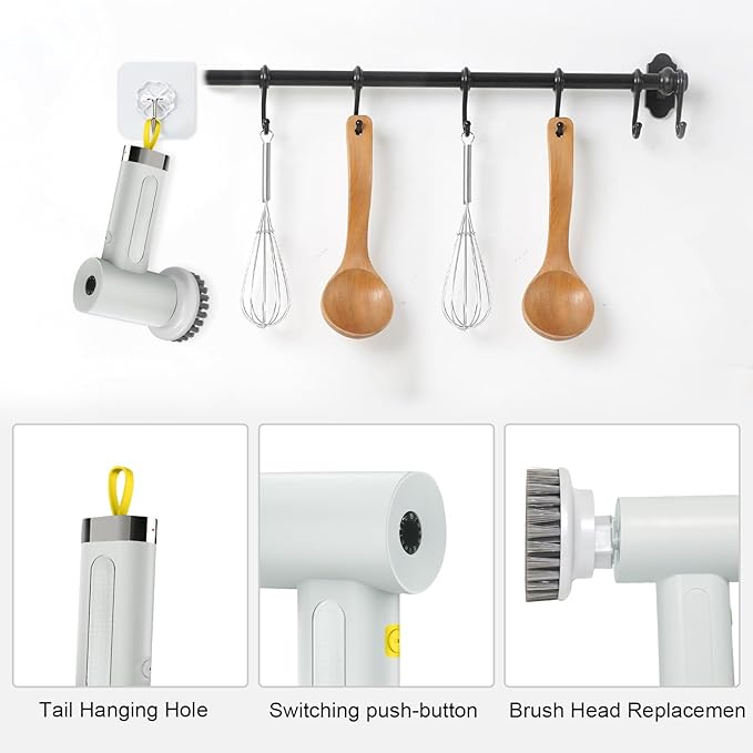 【軽量 & IPX7防水】: 軽量設計のコードレス電動クリーニングブラシは、長時間のクリーニングセッション中でも手首に快適に使用できます。 IPX7 防水は、様々な環境で安全にスクラバーを使用できる柔軟性を提供します。 洗浄後は、電気浴室用たわしを流水で洗浄し、デバイスを清潔に整頓できます。