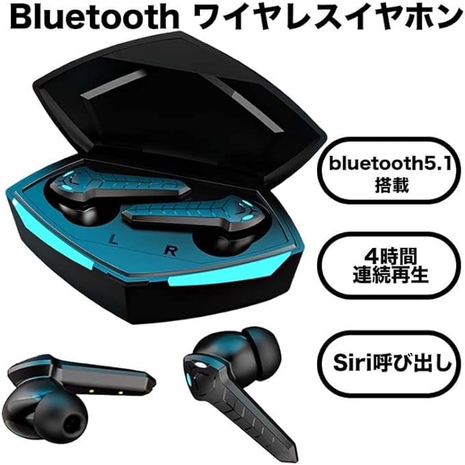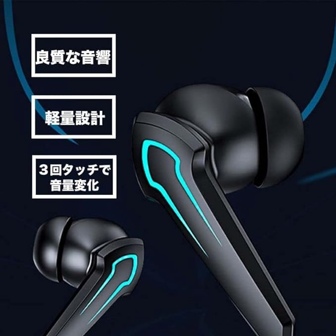 ワイヤレス イヤホン ゲーミング 自動ペアリング ノイズキャンセリング イク付き LED Bluetooth