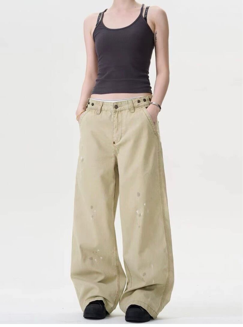 ◎お出かけやオフィスなど幅広く着こなせるハイウエストワイドパンツ。 シンプルなデニムパンツなので合わせやすいですよ! ルーズ感が今年らしく、履くだけで着こなし上手に見せてくれるバギーパンツ。