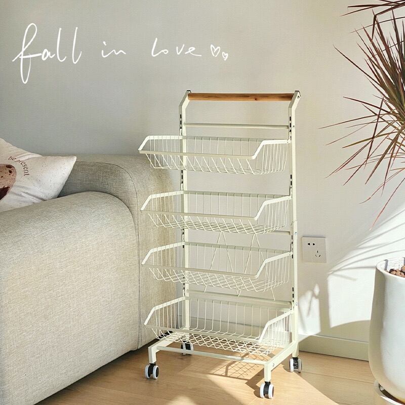 ローリングカート 取り外し可能 バスケット付き収納カート ホイールとハンドル付き 食品保管