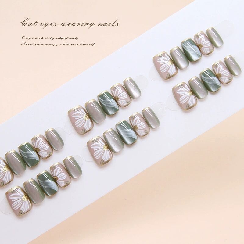 ネイルチップ つけ爪 光線療法 手作り キャッツアイネイル 韓国ファッション 可愛い和風 おしゃれ ジェルネ