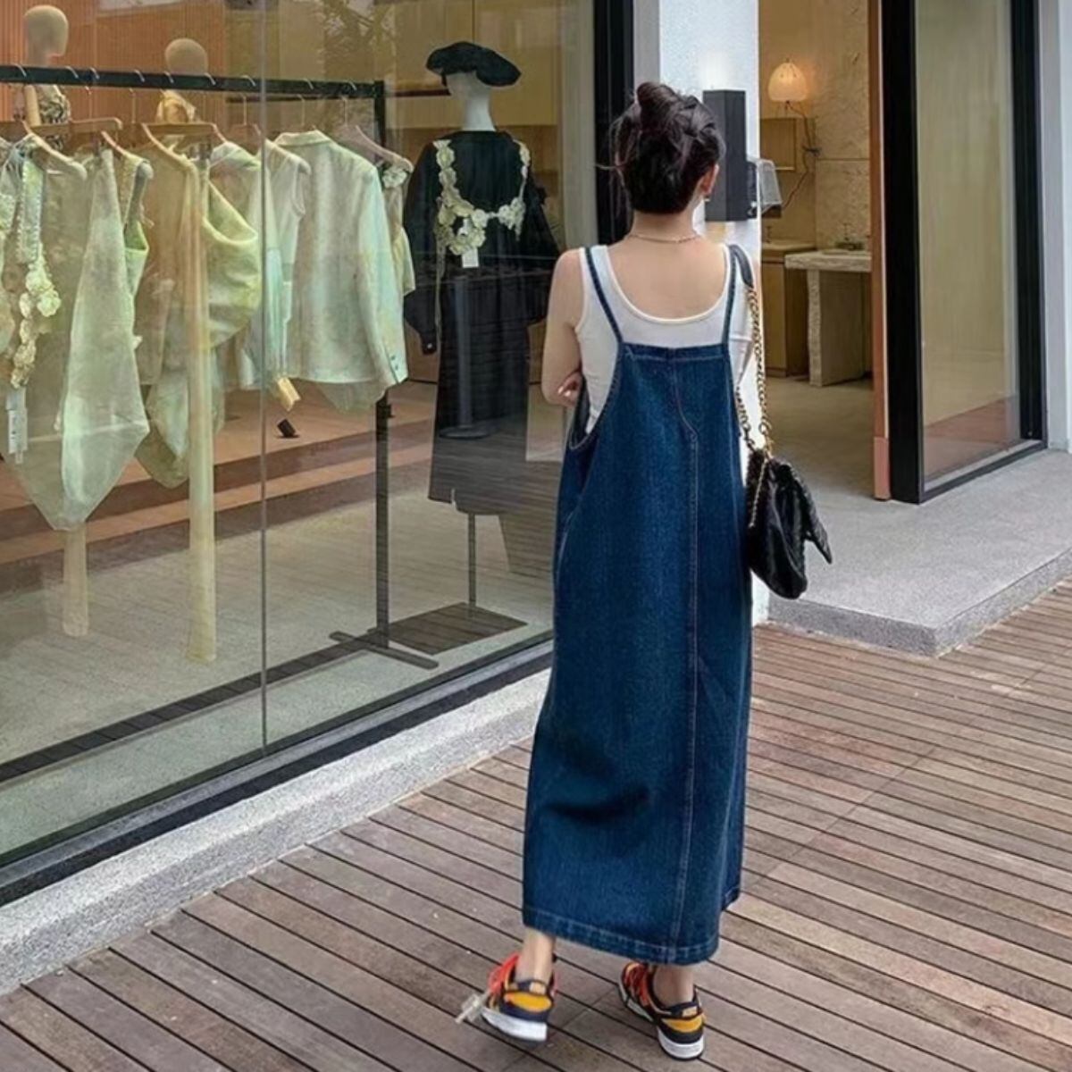 キャミワンピース デニム サロペット Aライン デニムワンピース レディース 韓国 体型カバー アジ